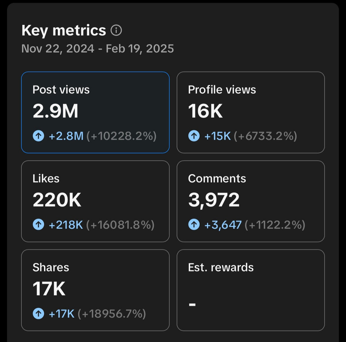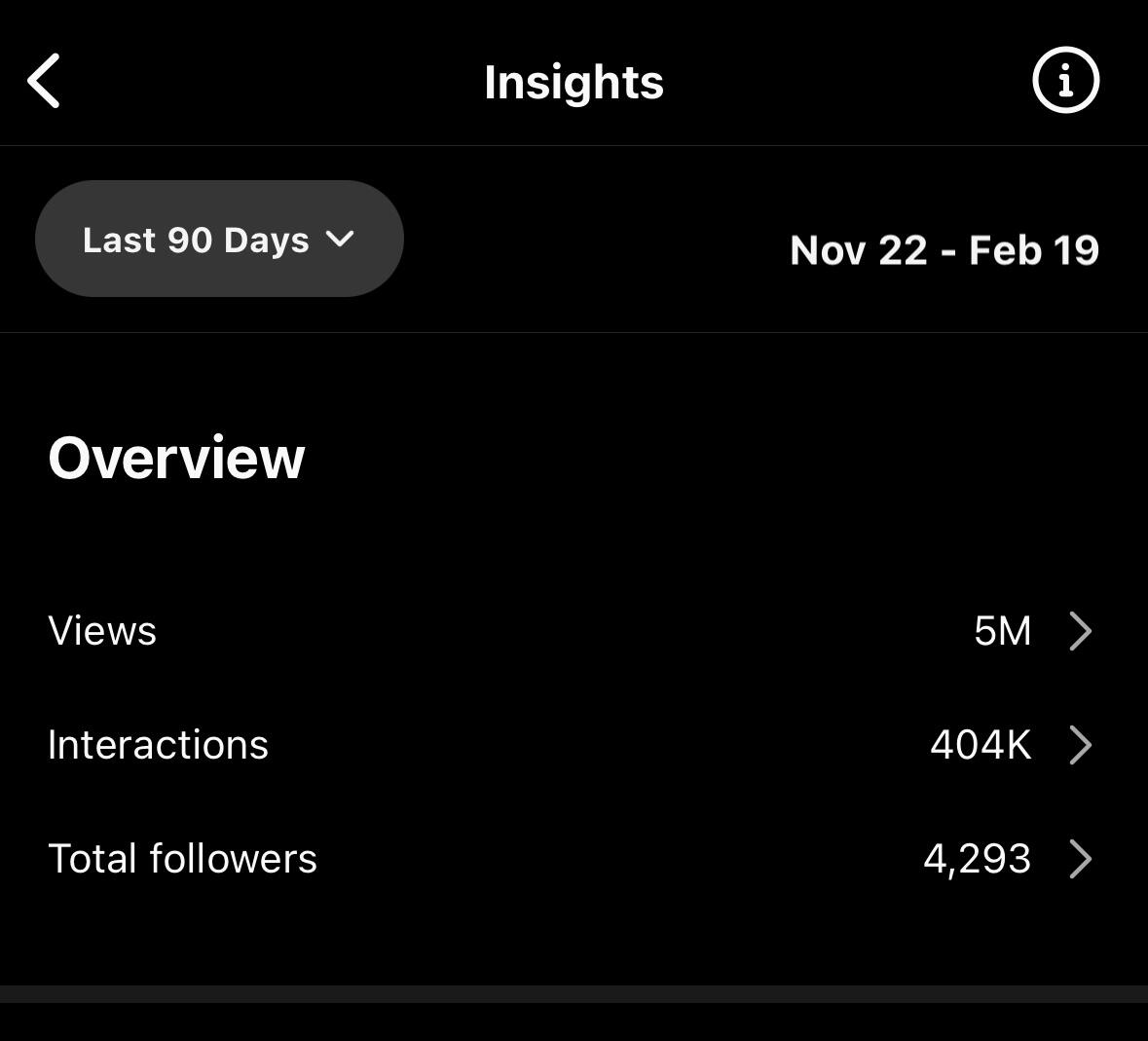 I challenged myself to create, edit, and post a short-form video per day for 21 days. Ended up going for a little longer, and these are the analytics from my accounts for 90 days.